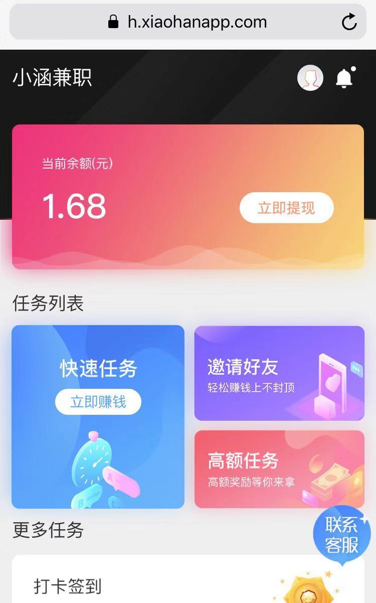 链接已下架 评分:8分 小涵兼职 系 统: 苹果 分 类:试玩赚钱 大 小:5.8MB 厂 商:暂无资料 更 新:2023-03-28 备案号:暂无资料 下 载:4436次 手机扫码访问 #小涵兼职应用截图 #小涵兼职应用介绍 小涵兼职是一个苹果试玩应用赚钱平台,任务单价1元左右,快速任务无需首次,能抢就能过,你只需要下载打开轻松赚,试玩任务3分钟,完成任务返回页面,即可领取现金奖励,最低10元即可提现,只要你敢提我就能秒到,分分钟搞定。 【赚钱特点】 1、任务多,种类丰富,不愁没工作,不用担心时间白白流失。 2、信息真,兼职信息都需要经过层层审核,去伪存真。 3、结算快。完成任务即可结算,瞬间到账,体验真正的赚钱快感。 上一个 今日头条极速版 下一个 小白赚钱 同类软件推荐 钱咖3.14MB 查看 多多红包3MB 查看 iMoney4.7MB 查看 小鱼赚钱8.2MB 查看 闪挣24.85MB 查看 小熊零花6.68MB 查看 应用试客2MB 查看 OK赚9MB 查看 评论列表 (0) 留言评论 提交评论