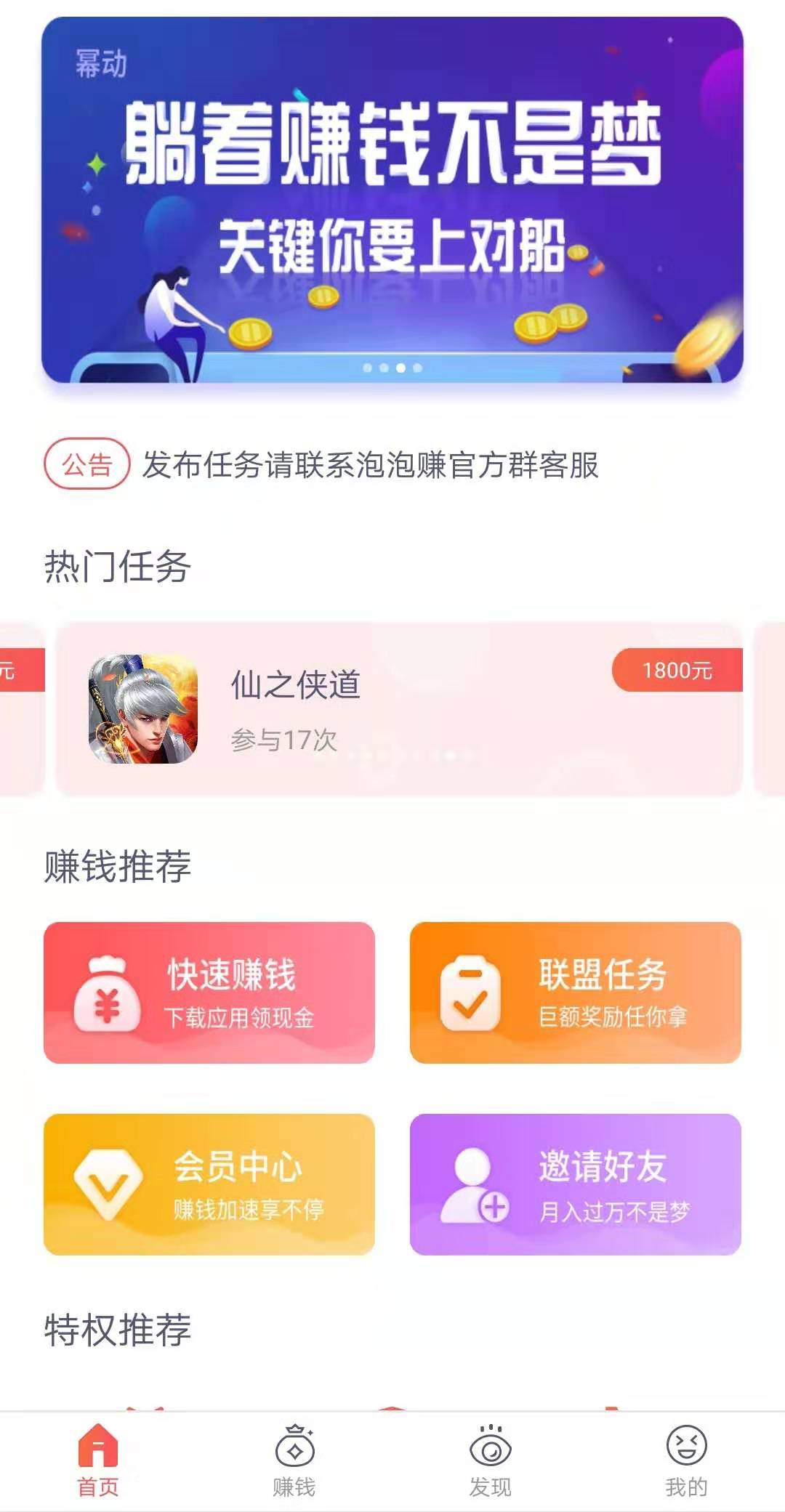 链接已下架 评分:8分 泡泡赚 系 统: 安卓 分 类:试玩赚钱 大 小:19.9MB 厂 商:暂无资料 更 新:2019-06-04 备案号:暂无资料 下 载:384次 手机扫码访问 #泡泡赚应用截图 #泡泡赚应用介绍 泡泡赚是一款单价较高安卓手机下载试玩赚钱的软件,任务单价在0.8元起,首次注册送5元,5元起提现秒到账。心动不如行动,赶快加入吧! 【应用特点】 1、注册送5元,提现秒到账。 2、邀请好友获取好友收益分成。 3、丰富的高收益任务,分享赚钱更能躺着赚。 上一个 今日头条极速版 下一个 小白赚钱 同类软件推荐 钱咖3.14MB 查看 多多红包3MB 查看 iMoney4.7MB 查看 小鱼赚钱8.2MB 查看 闪挣24.85MB 查看 小熊零花6.68MB 查看 应用试客2MB 查看 OK赚9MB 查看 评论列表 (0) 留言评论 提交评论