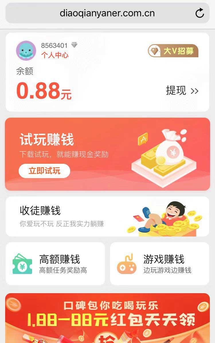 链接已下架 评分:8分 掉钱眼儿 系 统: 苹果 分 类:试玩赚钱 大 小:6MB 厂 商:暂无资料 更 新:2021-01-27 备案号:暂无资料 下 载:8663次 手机扫码访问 #掉钱眼儿应用截图 #掉钱眼儿应用介绍 掉钱眼儿是一款苹果手机试玩应用赚钱的平台,首次成功安装并激活,先领2元现金红包,掉钱眼儿用户下载APP试玩体验,即可获得奖励,人人都是“应用体验师”。试玩体验有趣好玩的app还可以赚很多零花钱,试玩一款应用1-3元,任务一般晚上9点更新。 【软件特点】 1、试玩赚钱任务单价1元左右,每天下午4点大量更新任务 2、收徒赚钱最高提成20元,徒弟完成首个任务给师傅5元 3、最低1元就可以申请提现,无手续费 上一个 今日头条极速版 下一个 小白赚钱 同类软件推荐 钱咖3.14MB 查看 多多红包3MB 查看 iMoney4.7MB 查看 小鱼赚钱8.2MB 查看 闪挣24.85MB 查看 小熊零花6.68MB 查看 应用试客2MB 查看 OK赚9MB 查看 评论列表 (0) 留言评论 提交评论