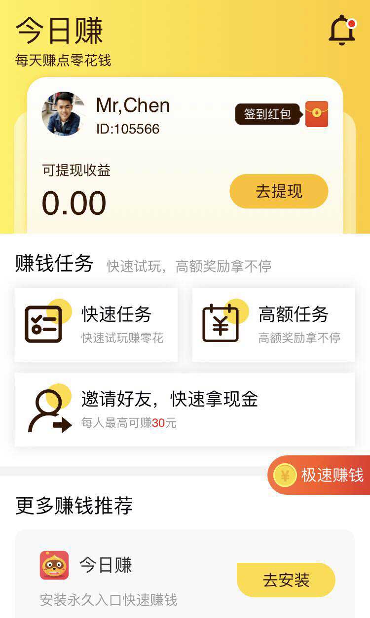 链接已下架 评分:8分 今日赚 系 统: 苹果 分 类:试玩赚钱 大 小:10MB 厂 商:暂无资料 更 新:2023-03-28 备案号:暂无资料 下 载:10360次 手机扫码访问 #今日赚应用截图 #今日赚应用介绍 今日赚ios,是国内最大的ASO搜索流量分发渠道,试玩单价1元起,今日赚是北京上榜科技科技有限公司推出的苹果iOS试玩应用赚钱平台。拿起你的手机刷刷几个任务,每个月的的零花钱又有了。邀请好友赚10元, 邀请越多奖励越多,带上您的好朋友一起来赚吧!每天赚点零花钱。 【赚钱特点】 1、任务多多,试玩单价1元起 2、最低10元即可申请极速提现 3、邀请好友每周都有阶梯奖励,提成上限10元 上一个 今日头条极速版 下一个 小白赚钱 同类软件推荐 钱咖3.14MB 查看 多多红包3MB 查看 iMoney4.7MB 查看 小鱼赚钱8.2MB 查看 闪挣24.85MB 查看 小熊零花6.68MB 查看 应用试客2MB 查看 OK赚9MB 查看 评论列表 (0) 留言评论 提交评论