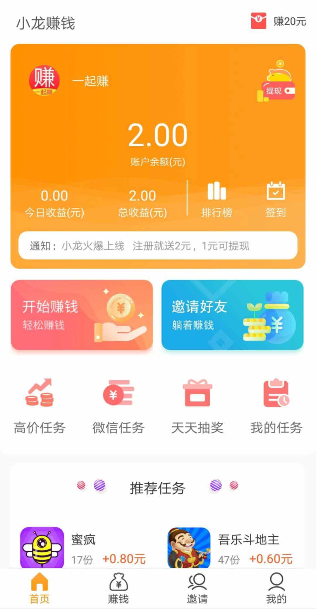 链接已下架 评分:8分 小龙赚钱 系 统: 安卓 分 类:试玩赚钱 大 小:8MB 厂 商:暂无资料 更 新:2019-12-25 备案号:暂无资料 下 载:1101次 手机扫码访问 #小龙赚钱应用截图 #小龙赚钱应用介绍 小龙赚钱APP一款适用安卓用户的手机兼职平台,里面有多种任务形式(快速任务,小程序任务,实名任务,绑卡赚钱,小程序赚钱,玩游戏赚钱...)应有尽有,让你在家轻轻松松即可赚更多的零花钱。 【软件特点】 多任务试玩赚钱平台,单价高,邀请单个好友上限奖励20元 收益满10元提现微信或支付宝、1-2个工作日到账 上一个 小白赚钱 下一个 OK赚 同类软件推荐 钱咖3.14MB 查看 多多红包3MB 查看 iMoney4.7MB 查看 小鱼赚钱8.2MB 查看 闪挣24.85MB 查看 小熊零花6.68MB 查看 应用试客2MB 查看 OK赚9MB 查看 评论列表 (0) 留言评论 提交评论