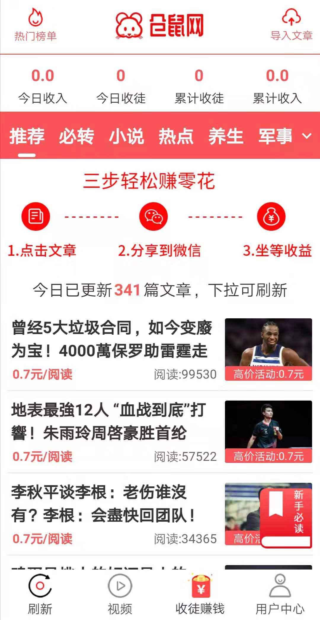 链接已下架 评分:8分 仓鼠网 系 统: 安卓 分 类:转发赚钱 大 小:11.7MB 厂 商:暂无资料 更 新:2021-01-28 备案号:暂无资料 下 载:411次 手机扫码访问 #仓鼠网应用截图 #仓鼠网应用介绍 仓鼠网APP是一款转发文章赚钱软件,轻松转转,满仓赚钱,转发任意文章到微信,坐等收益,首次登录奖励1元,支持自己上传文章,单价超高! 【赚钱特点】 1、转发文章被阅读一次计费0.85元; (单价现涨至1.2元/阅读) 2、邀请好友赚16元现金+50%收益分成 3、收益满5元到即可提现至微信零钱,之后10元起 上一个 番茄小说 下一个 小熊零花 评论列表 (0) 留言评论 提交评论