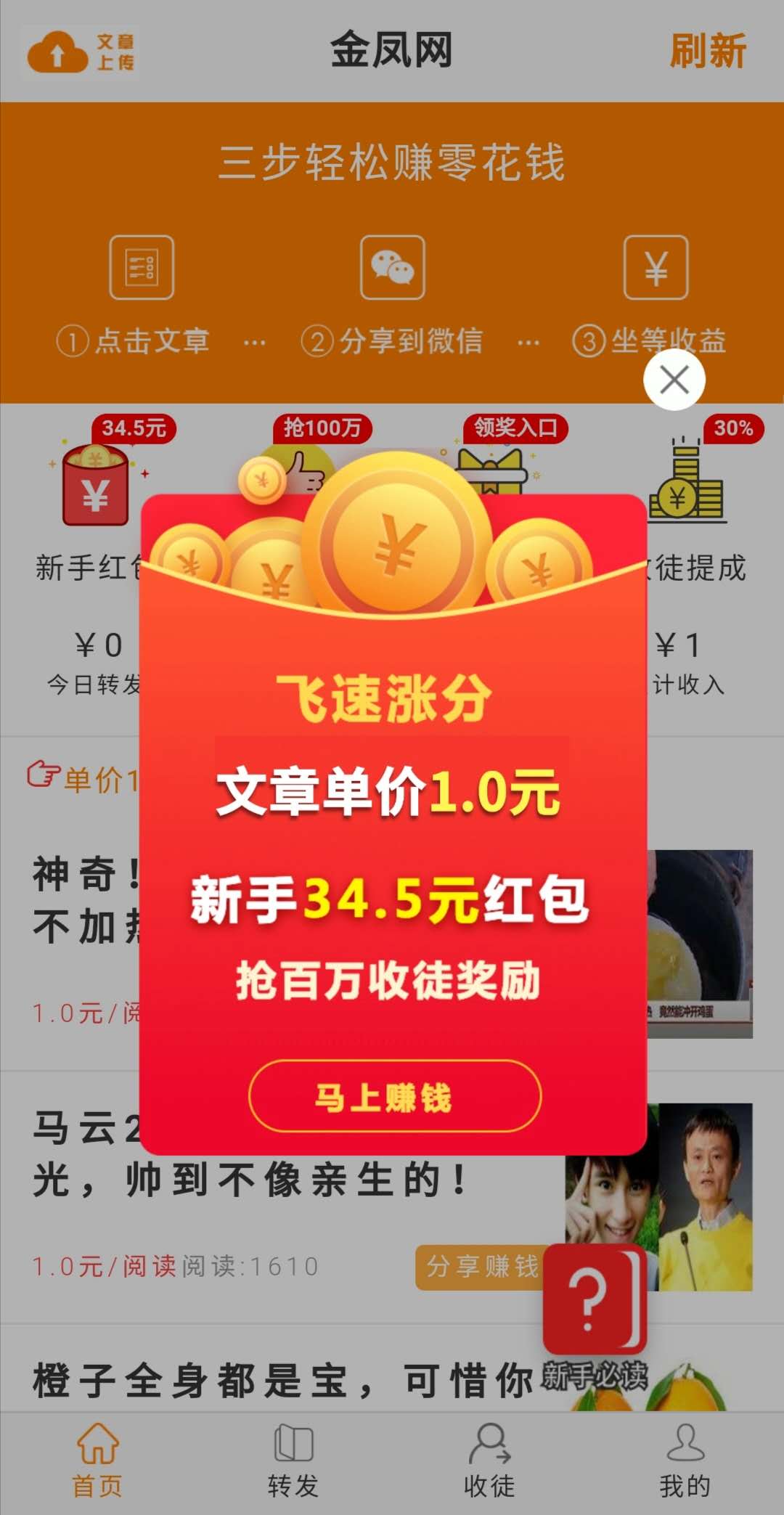 链接已下架 评分:8分 金凤网 系 统: 安卓 分 类:转发赚钱 大 小:7.09MB 厂 商:暂无资料 更 新:2020-08-08 备案号:暂无资料 下 载:49次 手机扫码访问 #金凤网应用截图 #金凤网应用介绍 金凤网APP是金蟾网旗下的一款转发文章赚钱软件,在软件上面有非常多的新闻资讯内容,让大家不仅可以增长、丰富自己的生活常识,同时把感兴趣的文章转发分享给好友即可获得现金收益,有感兴趣的朋友可以下载试试! 【金凤网特点】 1、新人下载直接送1元,还有34.5元红包可领,转发文章单价1元/阅读。 2、首次满5元提现秒到账,之后满10元提现,24小时到账。 3、邀请好友可获得16元的现金奖励,同时还可以获得两级共30%的收益进贡。 上一个 赚钱了 下一个 多多悬赏 评论列表 (0) 留言评论 提交评论