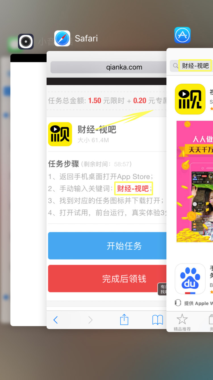 4、找到对应的任务图标并下载打开,打开试用,前台运行,真实体验3分钟。