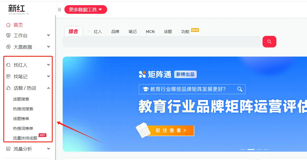 如新红数据工具提供了热点选题参考、低粉爆款内容等,都能作为我们创作方向的参考。
