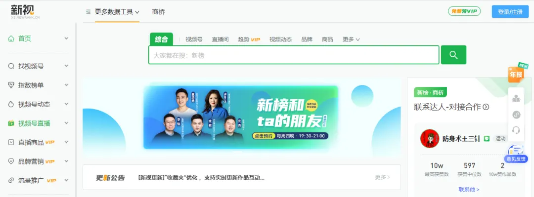 下图为新视数据分析工具,可以针对微信视频号做大数据分析